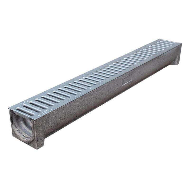 Dette Aquadræn er lavet af holdbar polymerbeton og leveres med en galvaniseret aftagelig rist, som er sikret med låseklemmer.