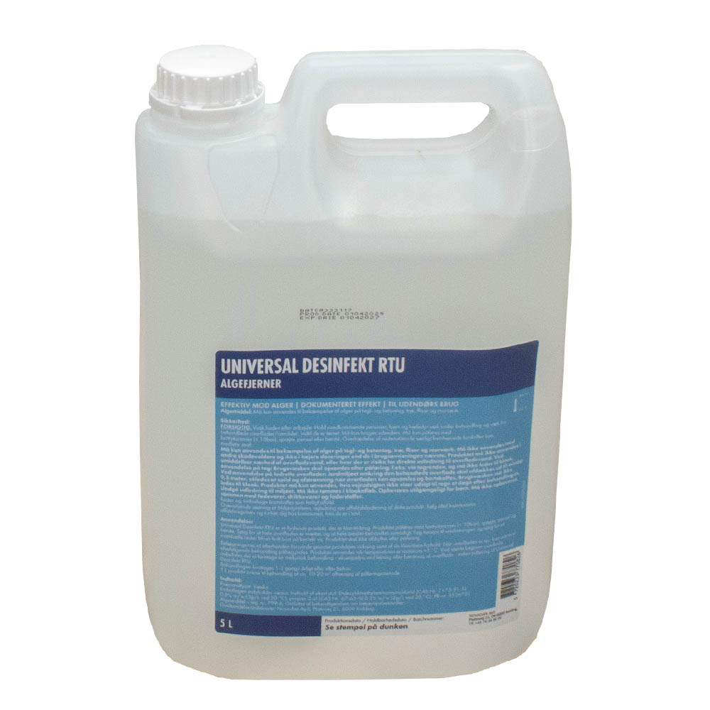 Universal Desinfekt RTU er en effektiv og brugervenlig algefjerner, godkendt til udendørs bekæmpelse af alger. Produktet kan anvendes på mange forskellige overflader som tegl, beton, fibercement (eternit), glas, mursten, træ og plast.