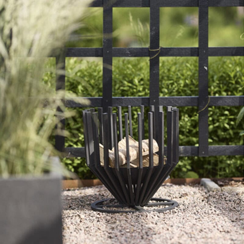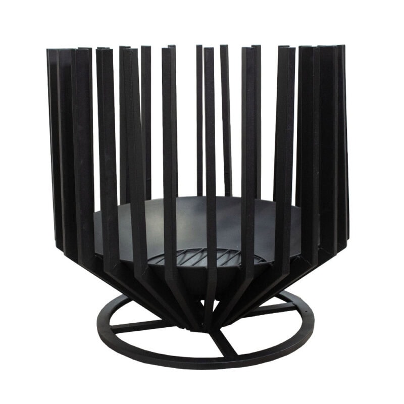 Dette moderne sorte ildsted i metal tilfører din have eller terrasse en elegant og hyggelig atmosfære. Med sin tidløse, sorte finish og minimalistiske design passer det smukt til både moderne og klassiske udendørsmiljøer.