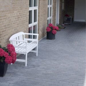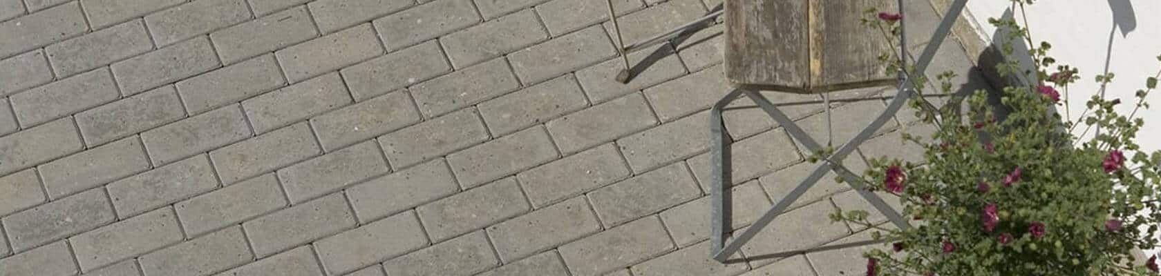 Belægningssten er lavet af beton og de får patina med tiden, det betyder at deres udseende og farve ændre sig over tid.