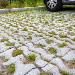 Coloc græsarmering giver et græsareal på 25%, hvilket giver et let grøn nuance til belægningen.