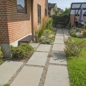 Soldaterfliser er store fliser, der bruges, når du ønsker en belægning med et roligt, stramt og moderne udtryk. De store fliser giver lange, sammenhængende linjer og færre fuger, hvilket gør belægningen mere overskuelig og lettere at holde pæn. Soldaterfliser bruges ofte til terrasser, indkørsler og gangstier, hvor man gerne vil have en ensartet flade uden for mange brud. Store fliser adskiller sig fra traditionelle havefliser ved deres format. Hvor mindre fliser giver flere fuger og et mere opdelt udtryk, hvor store fliser giver en mere samlet belægning. Det gør dem velegnet til både private haver og offentlige projekter. Soldaterfliser bruges i stigende grad sammen med andre belægninger, eksempelvis ved overgange til havefliser eller mere klassiske løsninger som rådhusbelægning, hvor kontrasten mellem store og små elementer giver et visuelt spil til belægningen. Store fliser giver ikke kun visuelt roligt udtryk, men også har en klar praktisk fordel i hverdagen. Når du vælger soldaterfliser frem for mindre formater, reducerer du antallet af fuger markant, hvilket gør belægningen lettere at holde pæn over tid. Færre fuger betyder mindre ukrudt og mindre behov for løbende vedligehold.