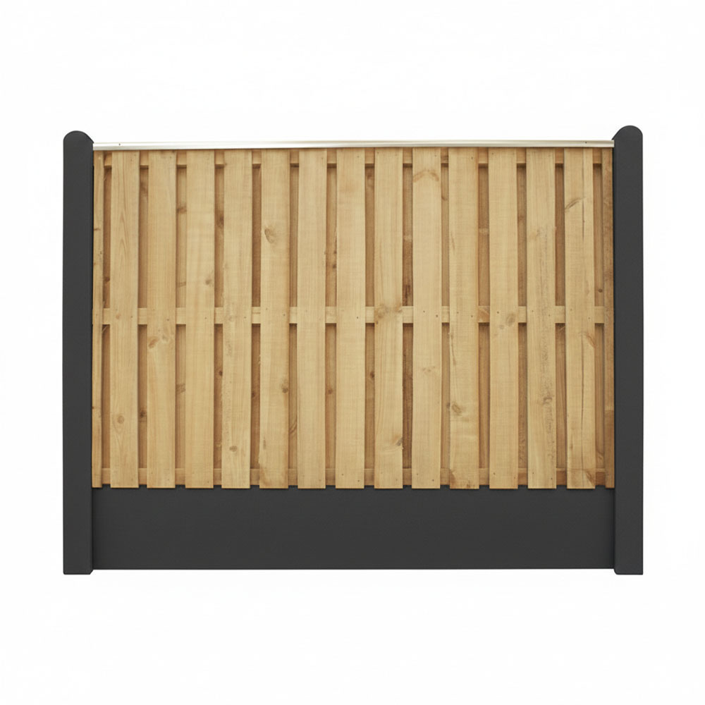 Hegnet monteres med stærke, danskproducerede betonstolper i en stilfuld sort/antracit farve. Stolperne er armerede for maksimal styrke og holdbarhed og har præcise falser, hvor brædderne let kan indsættes for en sikker og stabil montering. Stolperne har en afrundet top, der tilfører hegnet et eksklusivt og moderne udtryk. I bunden af hegnet sikrer en armeret betonbundplade på 4x30x189 cm, at træet ikke har direkte kontakt med jorden, hvilket beskytter mod fugt og forlænger levetiden. Kombinationen af de trykimprægnerede brædder og de mørke betonstolper skaber et elegant og holdbart hegn.