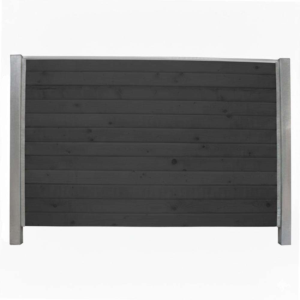 Hegnet monteres med stærke stålstolper, der måler 80x80 mm i bredden og har en højde på 270 cm. Stolperne har en godstykkelse på 2 mm, hvilket sikrer høj styrke og holdbarhed. De leveres med plasttoppe og sideskinner, der nemt monteres på stolperne ved hjælp af de medfølgende selvskærende skruer. Denne konstruktion giver hegnet et moderne og stilrent udtryk, samtidig med at det er både stabilt og vedligeholdelsesvenligt.