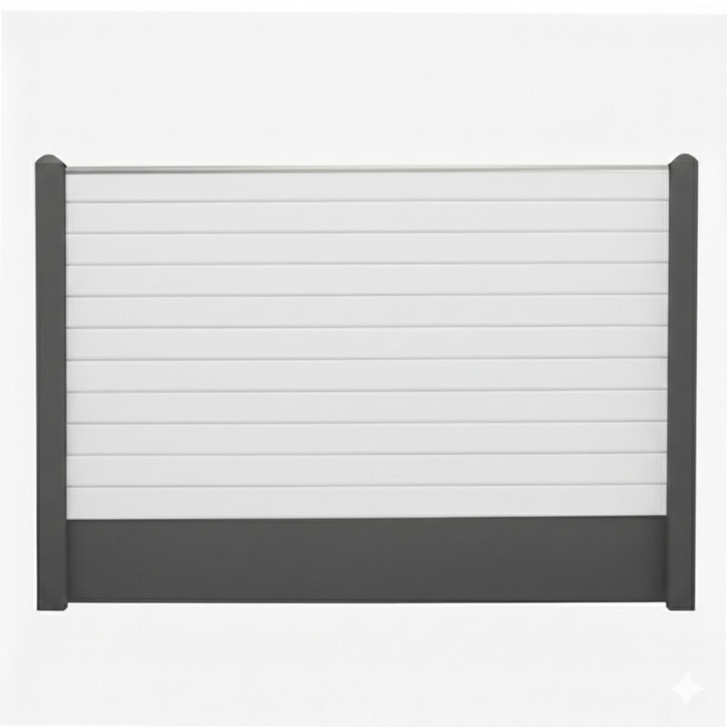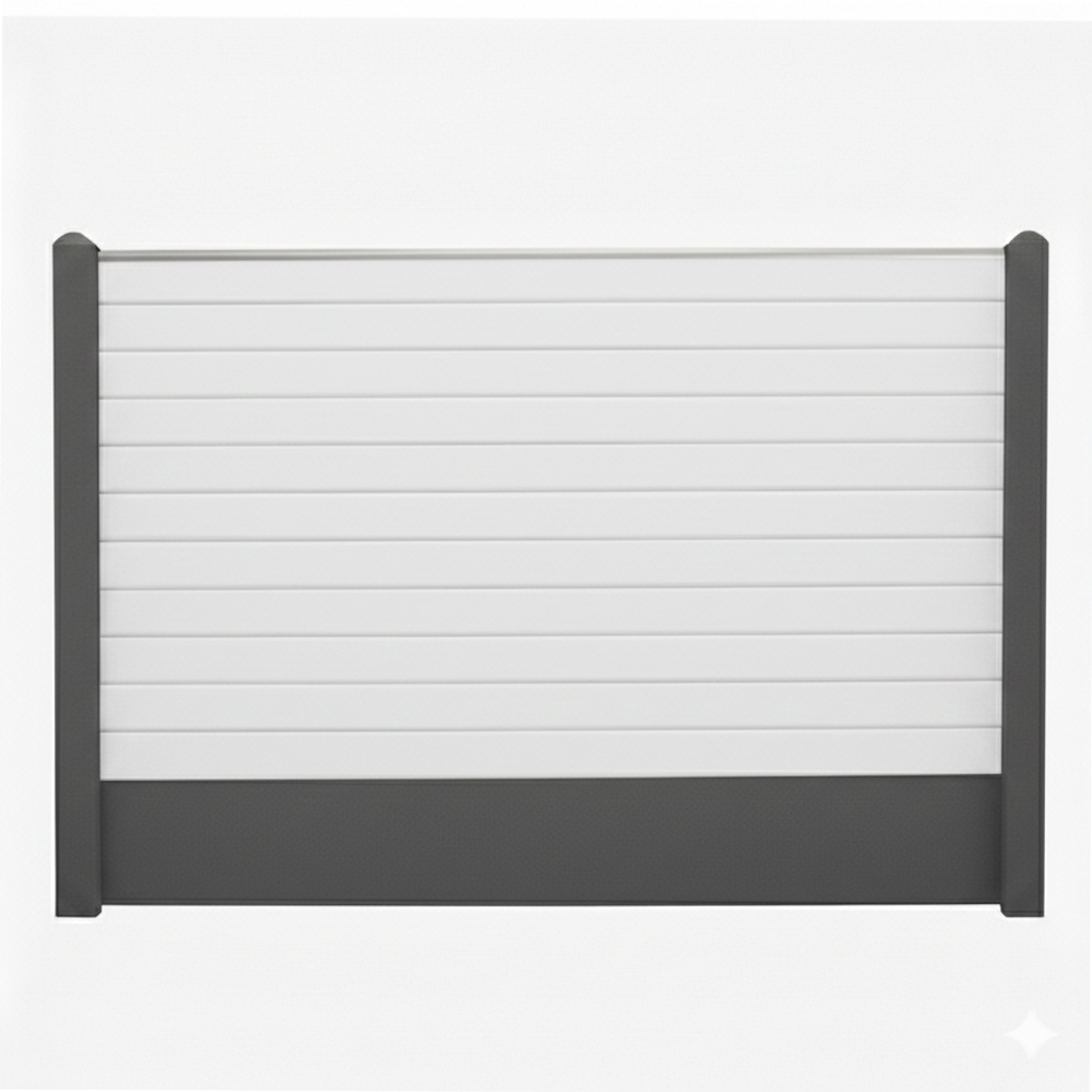 Hegnet monteres med robuste, danskproducerede betonstolper i en moderne sort/antracit farve. Stolperne er armerede for maksimal styrke og holdbarhed og har præcise falser, der gør det nemt at indsætte brædderne sikkert og stabilt. Stolperne har en afrundet top, der tilfører et eksklusivt og gennemført look. I bunden af hegnet sikrer en armeret betonbundplade på 4x30x189 cm, at træet ikke har direkte kontakt med jorden, hvilket beskytter mod fugt og forlænger hegnet levetid. Kombinationen af de hvide brædder og de mørke betonstolper skaber et smukt kontrastfyldt hegn, der passer perfekt til både klassiske og moderne omgivelser.