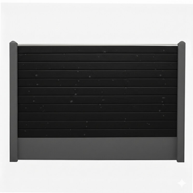Hegnet monteres med solide danskproducerede betonstolper i en flot sort/antracit farve. Stolperne er armerede for maksimal styrke og holdbarhed og har præcise falser, hvor brædderne nemt kan indsættes, hvilket sikrer en stærk og sikker samling. Stolperne har en afrundet top, der tilfører et elegant og fuldendt udtryk. I bunden af hegnet sikrer en armeret betonbundplade på 4x30x189 cm, at træet ikke har direkte kontakt med jorden. Dette beskytter mod fugt og forlænger hegnet levetid, samtidig med at det skaber en flot og harmonisk afslutning. Kombinationen af de sorte brædder og de mørke betonstolper giver et eksklusivt og stilrent hegn, der komplimenterer både moderne og klassiske omgivelser.