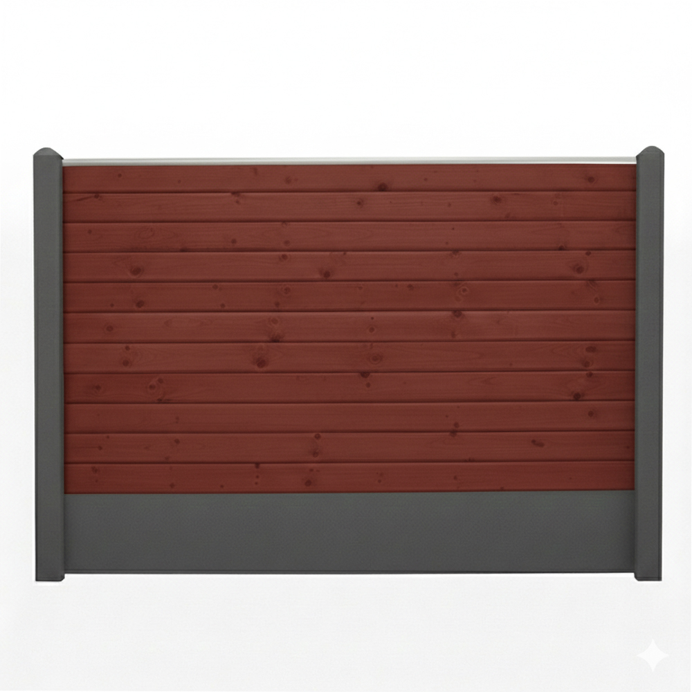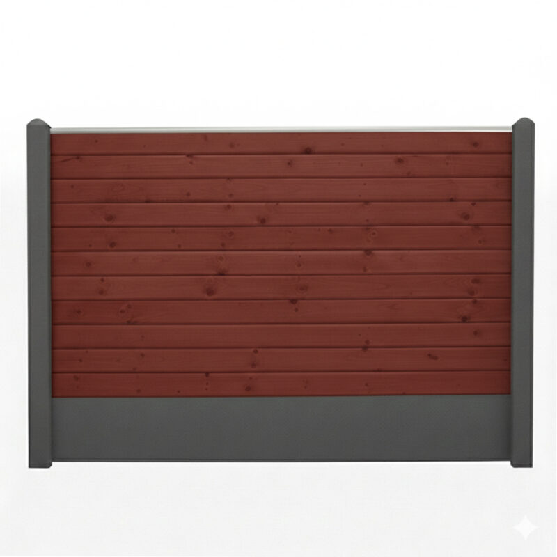 Hegnet er monteret med elegante danskproducerede betonstolper i en moderne sort/antracit farve. Stolperne er armerede for maksimal styrke og holdbarhed og har præcise falser, der gør det nemt at indsætte brædderne sikkert og stabilt. Stolperne har en afrundet top, der giver hegnet et eksklusivt og gennemført udtryk. I bunden af hegnet sikrer en armeret betonbundplade på 4x30x189 cm, at træet ikke har direkte kontakt med jorden, hvilket forlænger levetiden og beskytter mod fugt. Kombinationen af de svensk røde brædder og de mørke betonstolper skaber et flot og kontrastfuldt hegn, der passer perfekt til både moderne og klassiske omgivelser.