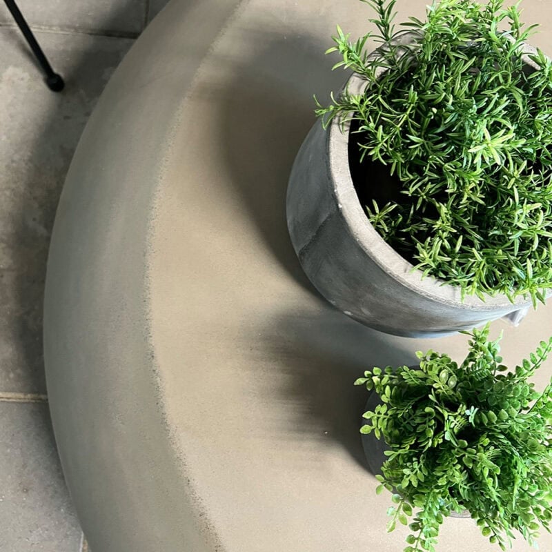 Bergen sofabord H36 Ø120 er et stilfuldt og robust sofabord, som passer perfekt til terrassen, haven eller udestuen. Bordet er fremstillet i let beton, hvilket gør det holdbart og vejrbestandigt uden at være tungt at flytte rundt på. Den store bordplade med diameter på 120 cm giver god plads til servering, pynt eller dekorationer.