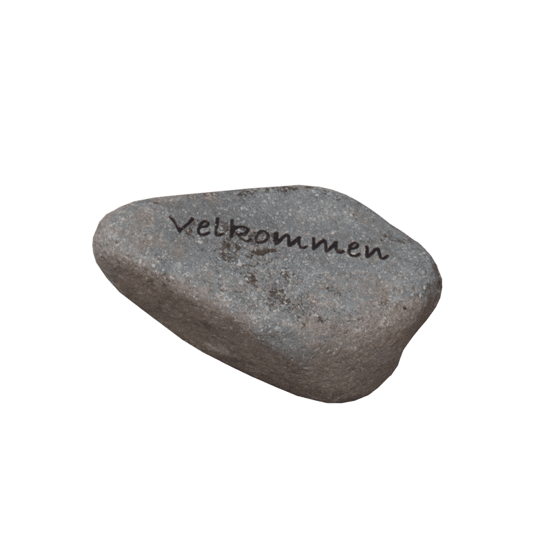 Teksten “velkommen” er indgraveret med en dybde, der skaber en flot kontrast til den glatte overflade på stenen. Placer denne pyntesten i et blomsterbed eller ved indgangen til din have for at byde gæsterne velkommen.