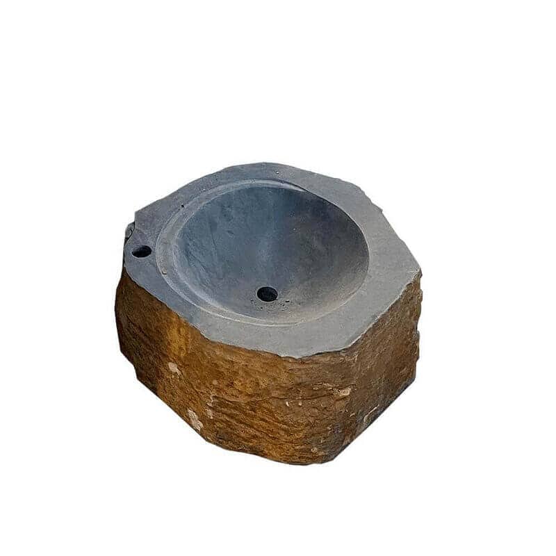 Vores udendørs vask har en smuk poleret overflade og en unik orange-sort farve, der passer godt ind i den naturlige omgivelser. Det enkle og elegante design gør det nemt at integrere i din udendørs indretning, mens det naturlige materiale giver en autentisk følelse af naturen.