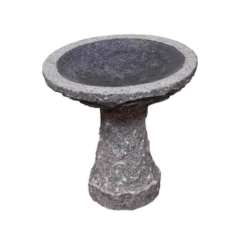 Fuglebadets sokkel er lavet i en naturformet grå granit, der er 2-delt og nemt at samle. For at samle fuglebadet, skal du blot placere skålen på knoppen på soklen. Denne funktionelle og holdbare konstruktion betyder, at fuglebadet kan modstå vejr og vind, og vil give glæde for både fugle og mennesker i mange år fremover.