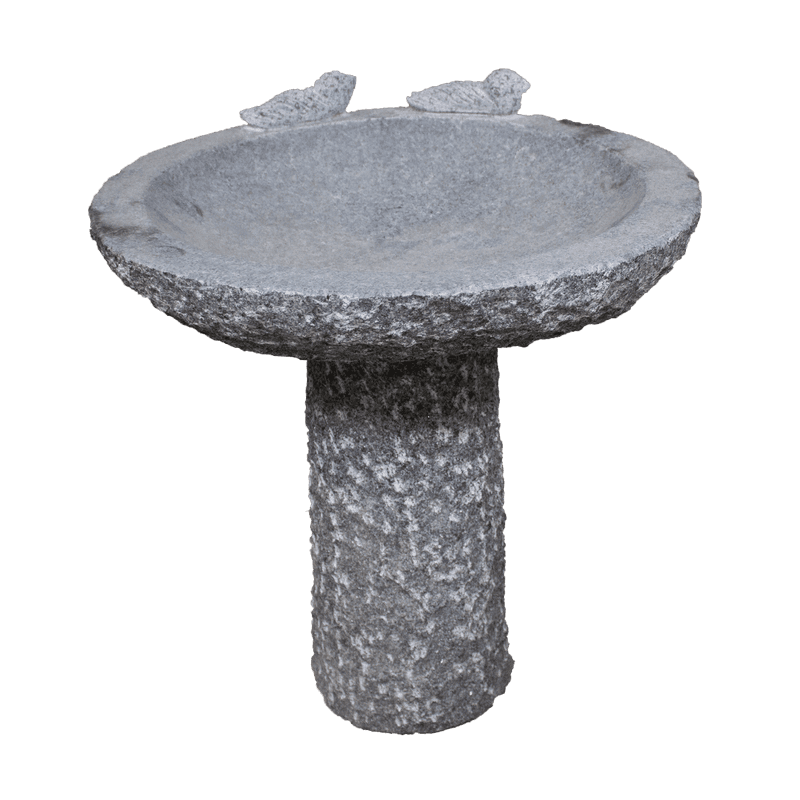 Fuglebadet har også en fin detalje med to små granitfugle, der er fastgjort til skålen, hvilket giver en ekstra charme til fuglebadet og kan fungere som en tiltrækningsfaktor for fuglene.