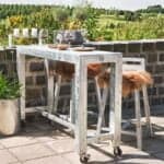 Oplev perfektion i både funktionalitet og design med vores Galvaniserede barbord på 46,5x143x100 cm. Dette bord er designet til det udendørs liv og er bygget til at modstå elementerne. Det er fremstillet af varmtgalvaniseret jern og høj kvalitets betonfliser, som begge er kendt for deres modstandsdygtighed over for al slags vejr, inklusive solens skarpe stråler, frost og kuldegrader.