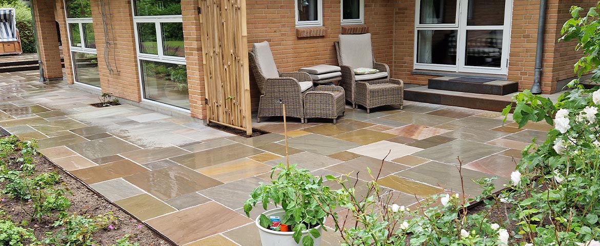 - Sommer: Hold sandstenene rene ved at feje og skyld dem gerne hvis der har været tør i en lang periode.