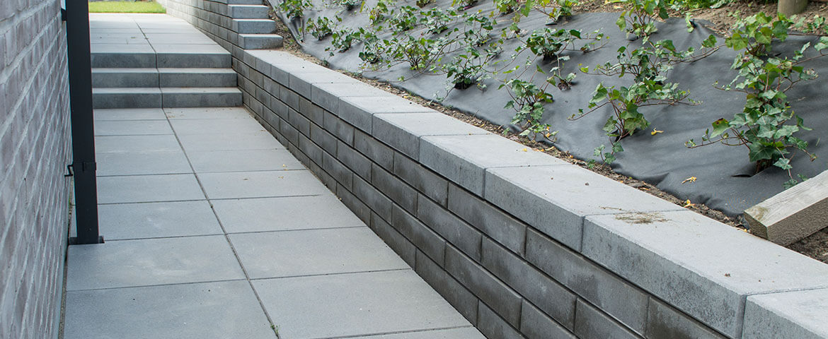 I forbindelse med en støttemur anlægges der typiske en trappe. du kan se vores forskellige betontrappe trin her