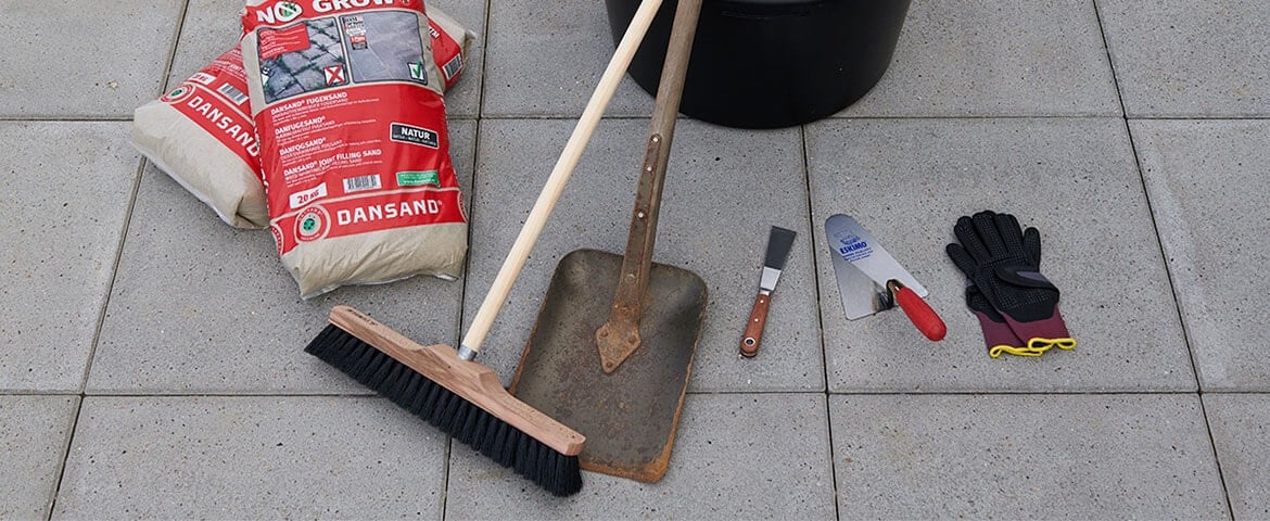 Vi anbefaler, at du, når din belægning er rengjort, fejer nyt fugesand ned i belægningen. Vent, indtil belægningen er tør. (Regn ud, hvor meget fugesand du skal bruge med vores fugesandsberegner).