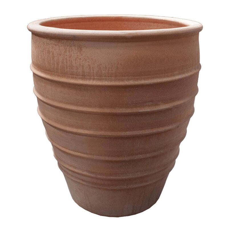 Med Græske krukker “Fraska” får du en smuk og robust krukke til haven, altanen eller terrassen. Denne håndlavede krukke har en flot og unik form med smukke linjer, der strækker sig fra bunden og op til toppen af krukken. Krukken har en diameter på 55 cm og en højde på 65 cm, hvilket gør den ideel til større planter og blomster.