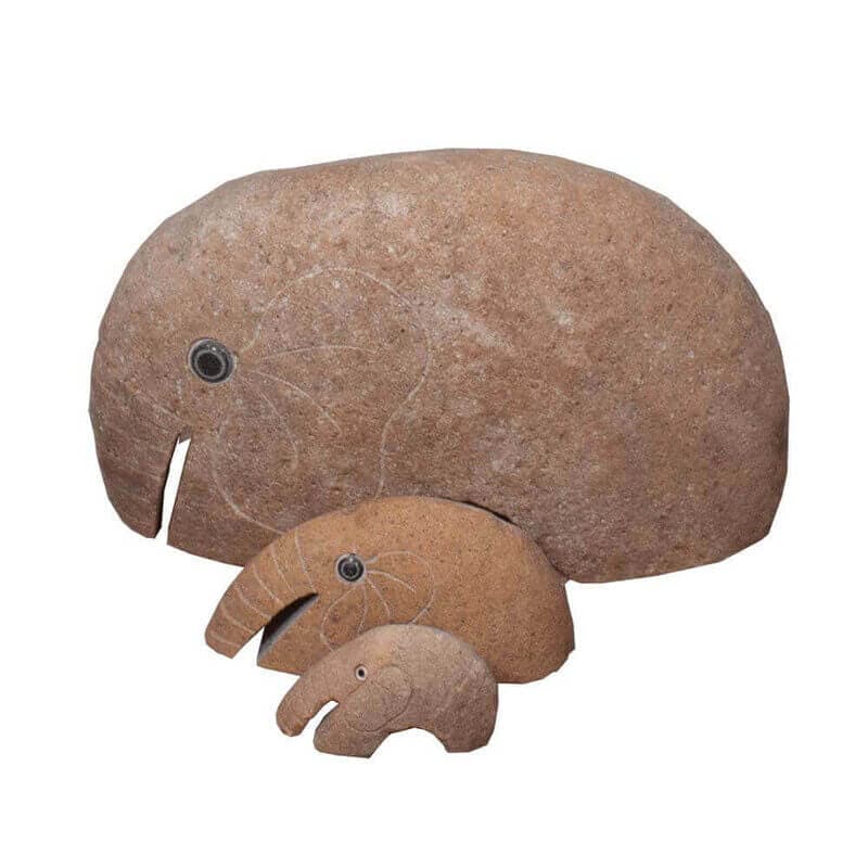 Den skårede snabel og andre detaljer på elefanterne er lavet med stor omhu og giver en flot tekstur til stenen. Da hver elefant er lavet af natursten, kan størrelse og farve variere lidt, hvilket betyder, at du får et unikt stykke, som ingen andre vil have præcis det samme af.