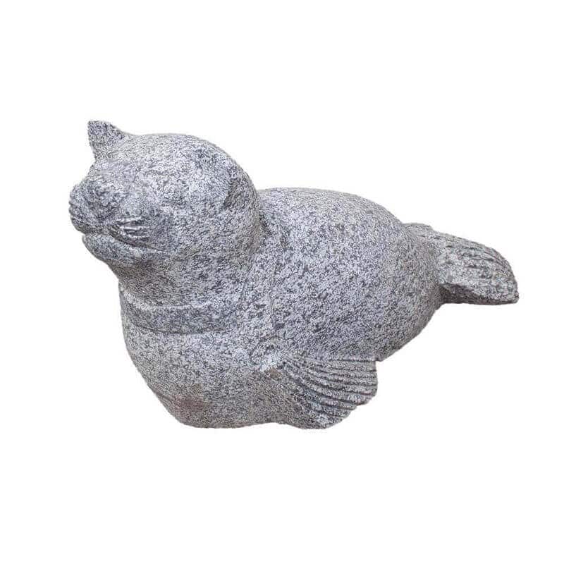 Vores håndlavede og unikke granitsæl, skåret og poleret til perfektion. Lavet af holdbar grå granit med flotte og detaljerede snit, denne sæl er en perfekt dekorativ tilføjelse til dit hjem eller have.