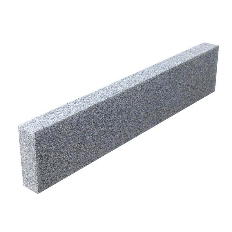 Denne Granit kantsten er stokhugget og har helt lige kanter, der giver et skarpt og rent udseende hele vejen rundt. Den lige skårne udformning gør det nemt at skabe præcise og jævne afgrænsninger langs din indkørsel, sti eller havegang.