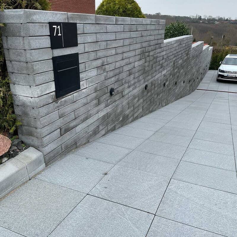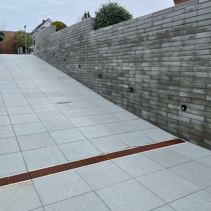 Men det er ikke kun deres robusthed, der gør dem til et fremragende valg for indkørsler. Disse granitfliser er jetbrændte, en proces der giver dem en skridsikker overflade. Dette betyder, at selv i regnvejr, vil du og dine gæster kunne bevæge jer sikkert på dem uden bekymring for at glide.