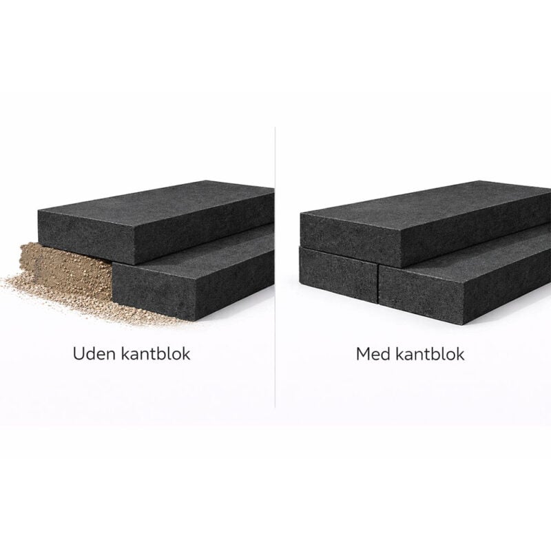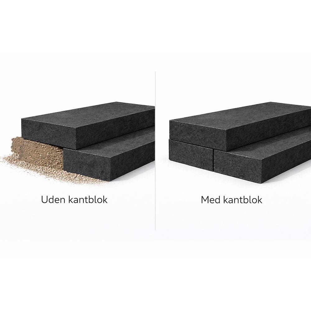 Når kantblokken er monteret, får du en granittrappe, der fremstår massiv og færdig hele vejen rundt – uden synlig opbygning eller åbne sider.