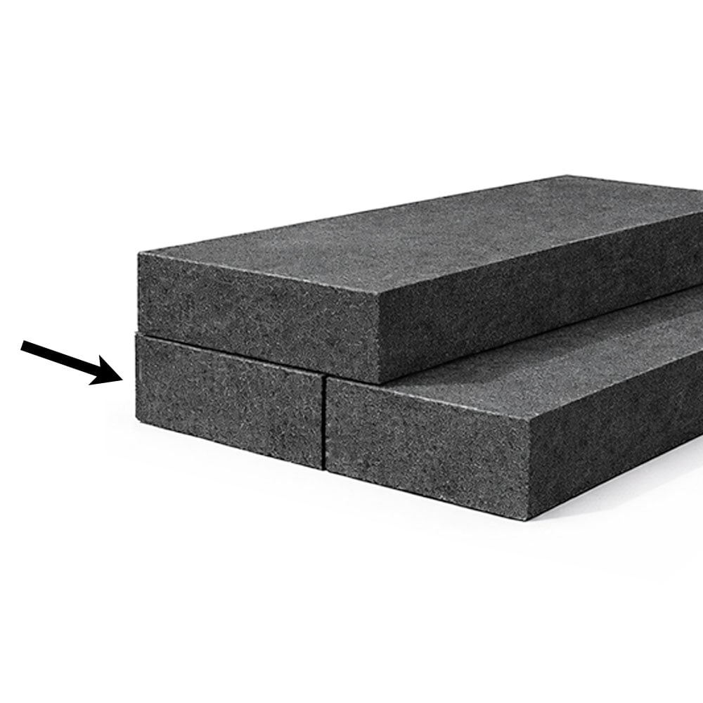 Vores blok til trappetrin er lavet til vores granittrin og bruges til at lave en flot og lukket afslutning i siderne, når flere trin stables oven på hinanden. Når granittrin opstilles i niveauer, vil der normalt være synlig jord eller opfyldning i siden mellem trinene. Med den her blok lukkes siden af, så trappen fremstår ensartet og færdig fra alle vinkler. Blokken monteres i siden mellem to trin og følger trappens opbygning, så der opnår et flot resultat uden synlig hulrum.