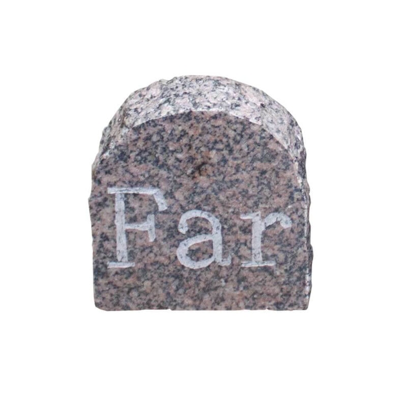 Med dette elegante navneskilt i rødlig granit kan du ære mindet om din far på en smuk og holdbar måde. Navneskiltet er lavet i høj kvalitet og har en graveret “far” i en flot poleret overflade. Omkredsen af navneskiltet har en natur overflade, som giver en flot kontrast til den polerede skrift.