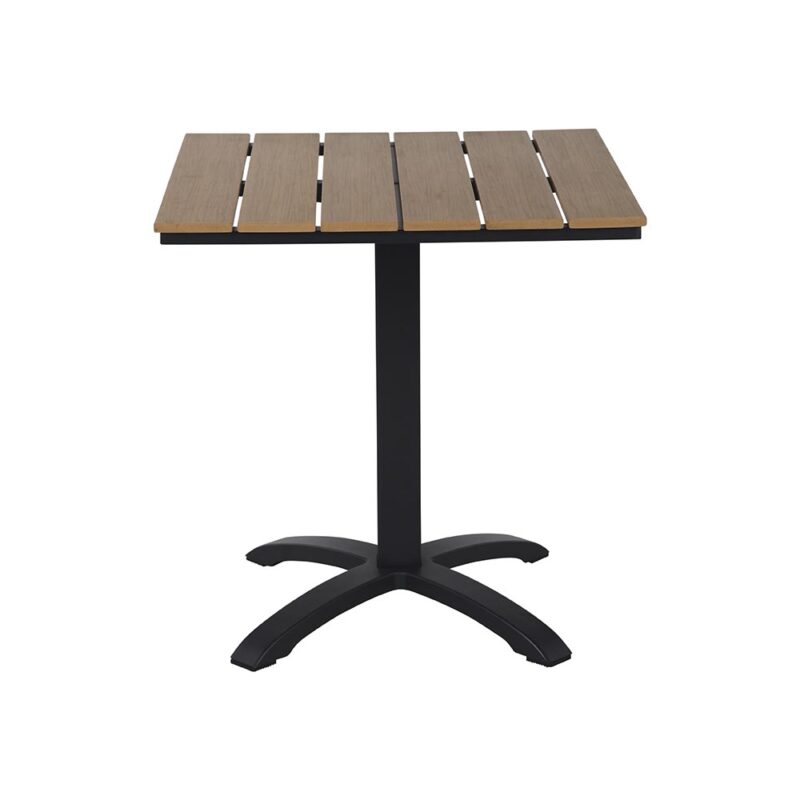 Praktiske Egenskaber: Med målene 70 x 70 x 72 cm er dette cafébord kompakt nok til små rum, men rummeligt nok til at skabe en hyggelig atmosfære for samtaler og måltider. Den firkantede plade giver rigelig plads til dine ting, mens bordets design sikrer, at det nemt kan passe ind i forskellige udendørs indretninger.