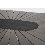 Dette ovale havebord, der måler 195x102 cm, kombinerer de holdbare materialer aluminium og polywood for at skabe et tidløst, vejrbestandigt og stilfuldt centerpunkt for dit udendørs område.