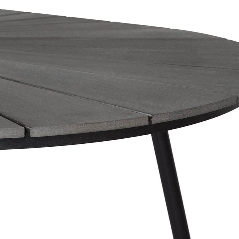 Designet af dette bord skiller sig ud med sin unikke ovale form og kontrastfarvede nonwood brædder, der tilføjer en æstetisk appel til enhver udendørs indretning. Det sorte finish giver en elegant og sofistikeret fornemmelse, der komplementerer et bredt udvalg af udendørs møbler og tilbehør.