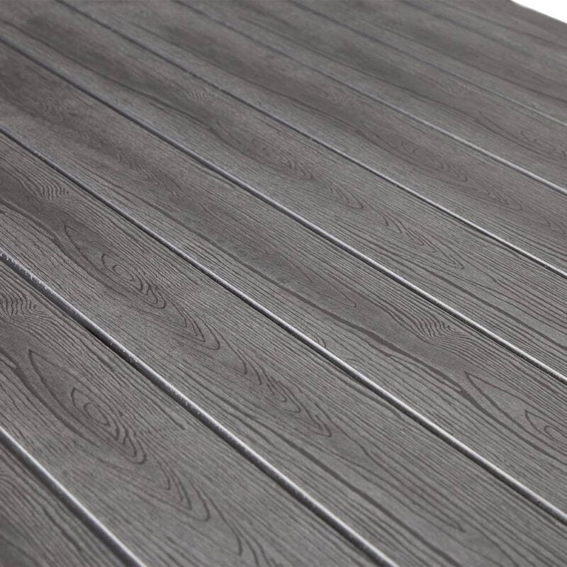 Stellet i sort aluminium kontrasterer smukt med de grå polywood plader, hvilket skaber en moderne og stilsikker æstetik. Denne kombination vil utvivlsomt tilføre en unik og moderne atmosfære til din terrasse eller have.