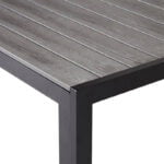 Bordpladen er lavet af grå polywood, et genbrugeligt plastmateriale, der kombinerer holdbarhed med en flot udseende, der ligner ægte træ. Polywood er yderst modstandsdygtigt over for vejr og vind, hvilket sikrer, at det bevarer sin flotte overflade, selv efter mange års brug udendørs.