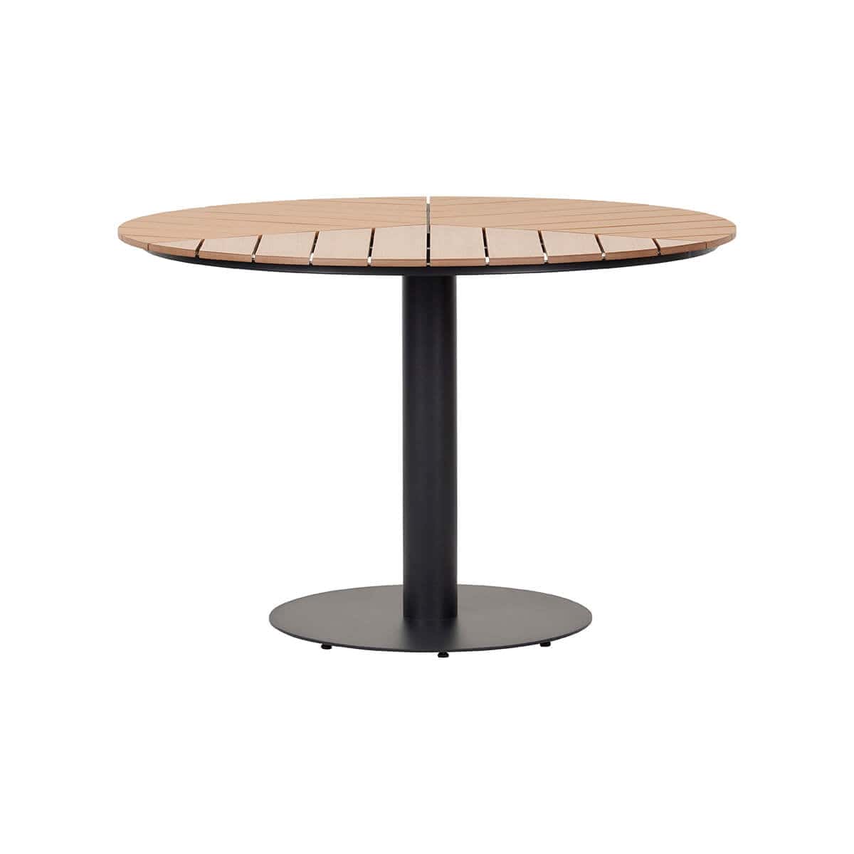 Bordet har en strømlinet sort metalstel, der er pulverlakeret for ekstra beskyttelse mod vejret. Denne finish er ikke kun attraktiv, men også utrolig holdbar, hvilket hjælper bordet til at holde sig godt udseende år efter år. Det solide stel understøtter en smuk bordplade lavet af nonwood i en indbydende teakfarve. Nonwood er et kompositmateriale, der kombinerer det bedste fra både naturlige og syntetiske materialer – det har det varme, indbydende look af ægte træ, men med styrken, holdbarheden og vejrbestandigheden i syntetiske materialer.