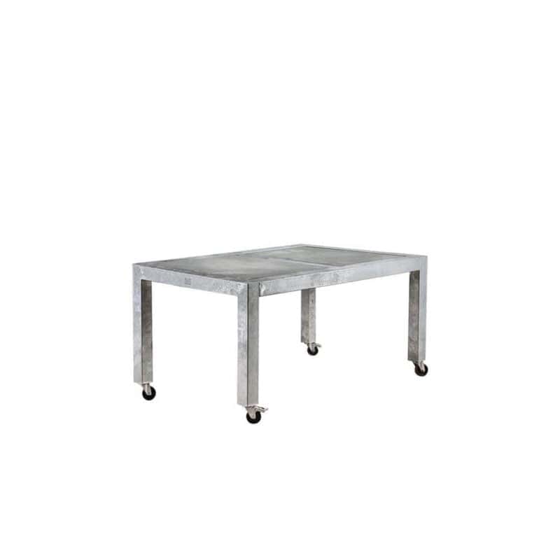 Bordet er fremstillet af varmtgalvaniseret jern, som er kendt for sin exceptionelle holdbarhed og modstandsdygtighed overfor vejrliget. Galvaniseringen beskytter jernet mod korrosion, hvilket sikrer, at bordet vil se godt ud og holde sig stærkt i mange år fremover. Dette gør det muligt for bordet at stå udendørs hele året rundt i alle slags vejr uden at blege eller ruste.
