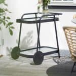 Denne serveringsvogn er designet til at skabe et hyggeligt og indbydende udendørs miljø. Uanset om du serverer kolde drikkevarer på en varm sommerdag, eller om du præsenterer et smukt anrettet måltid under stjernerne, vil denne serveringsvogn bidrage til at skabe uforglemmelige øjeblikke. Det er det perfekte redskab til at transportere og præsentere dine kulinariske mesterværker med stil og elegance.