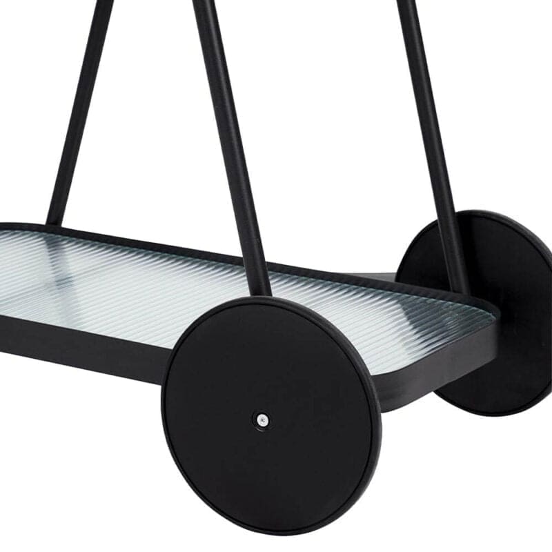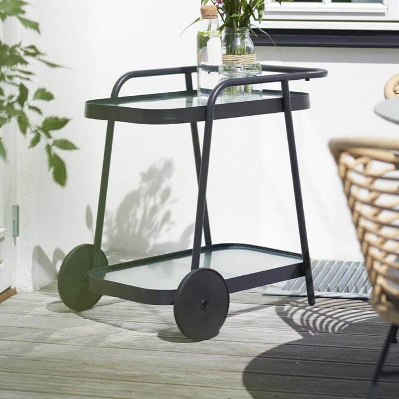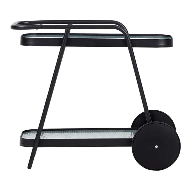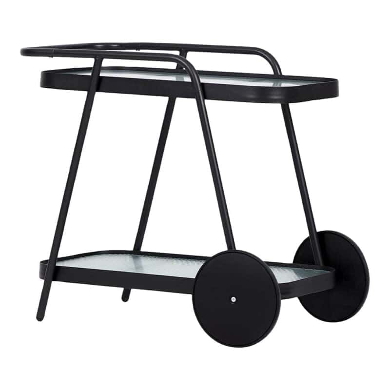 Tilføj en elegant og funktionel dimension til din udendørs indretning med vores serveringsvogn i aluminium. Denne vogn er udført i robust aluminium med en stilfuld sort pulverlakering, der giver et moderne og sofistikeret look.