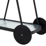 Det stærke aluminiumsramme sikrer, at vognen kan håndtere en bred vifte af genstande, fra lettere drikkevarer til tungere retter. Den sorte pulverlakering giver ikke kun vognen et elegant look, men fungerer også som en ekstra beskyttelse mod vejr og vind, hvilket gør den ideel til udendørs brug.