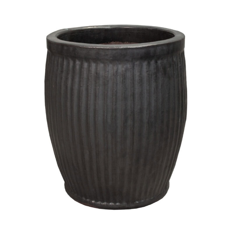Isabel-krukken i størrelsen H50 x Ø45 cm er en smuk, håndlavet stentøjskrukke med en mat sort overflade og lodrette riller, der tilfører krukken et enkelt og elegant udtryk. Den dybe sorte nuance og rillede struktur gør krukken til en stilfuld løsning til både moderne og klassiske haver eller terrasser.