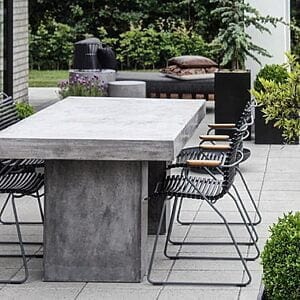 Fiberbeton er et moderne og holdbart materiale. Borde i fiberbeton kræver minimal vedligehold og kan stå ude året rundt. Vi anbefaler dog at give bordet fiberbeton voks en gang om året for at få beholde sit glatte udseende. Fiberbeton er robust og vejrbestandigt. - Polywood