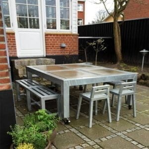Galvaniseret stål er et populært valg til udendørs møbler, da det er ekstremt holdbart og modstandsdygtig over for rust. Det galvaniserede lag beskytter stålet mod fugt og vejrforhold, hvilket gør det ideelt til møbler, der skal stå ude hele året.