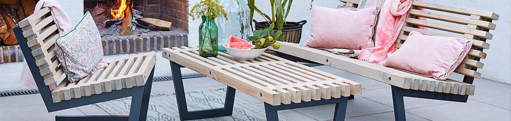 - Hygge ved bålstedet: Skab en hyggelig plads omkring bålstedet med træbænke. Her kan du sidde og nyde aftenerne omkring flammernes varme og lave snobrød.