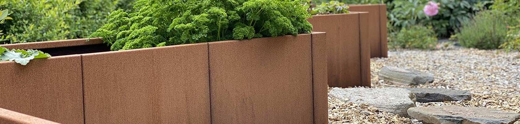 - Rektangulære corten højbed: Den alsidige og sikre løsning. Den rektangulære modul er perfekt til rumdeler, køkkenhave eller som plantekasse. De er perfekte til urter og grøntasager, men også god til højegræsser hvis du afskærme.