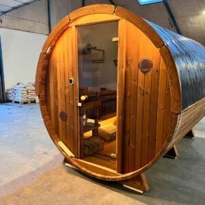 - Vildmarksbad Ø225 cm: Den større model måler 225 cm i indre diameter og kan komfortabelt rumme 6-7 personer.