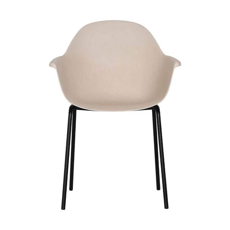 Stolens ben er lavet af sort metal, der giver en flot kontrast til det lyse sæde. Metalbenene er også robuste og holdbare, hvilket sikrer, at stolen kan holde til mange års brug. Deres sorte farve tilføjer et strømlinet og moderne look, der vil komplementere enhver udendørs indretning.