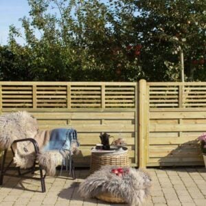NewLine er fremstillet af trykimprægneret nåletræ, der sikrer, at hegnet kan holde til det danske klima med alt fra regn, vind og sol. Trykimprægneringen beskytter træet mod fugt og råd og forlænger hegnets levetid.