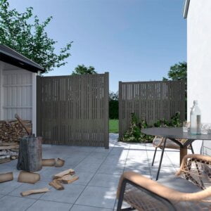Linea hegn har et moderne og luftigt design med lodrette lameller, der skaber en let og åben fornemmelse.