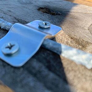 Rionet uden ramme monteres med bøjlebeslag hvor der skrues 2 skruer i stolpen.