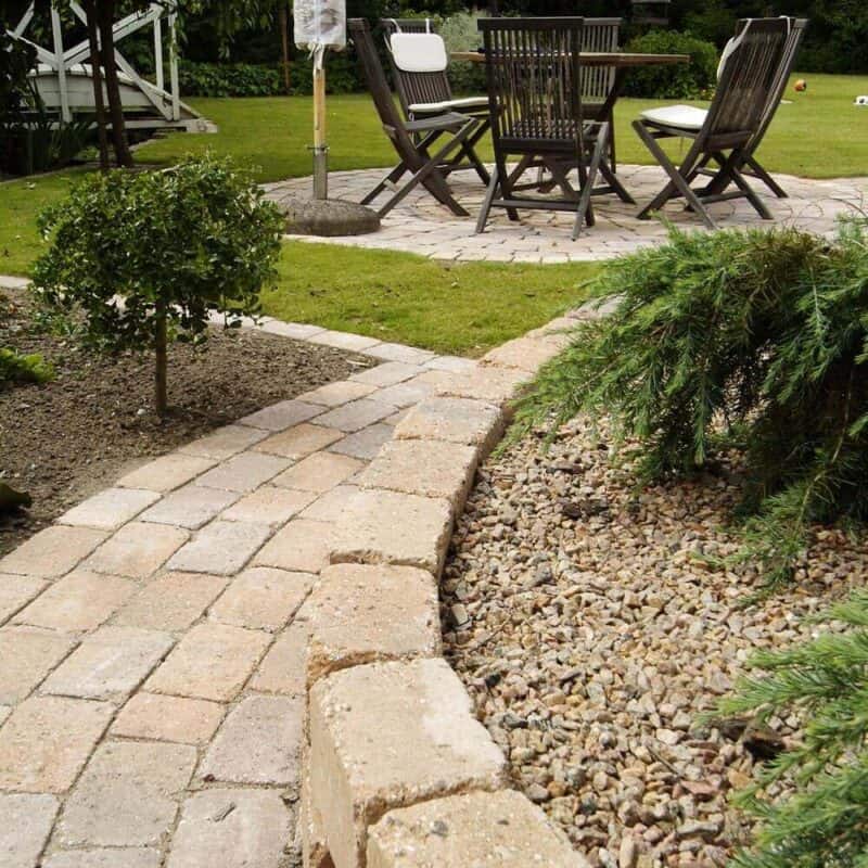 Herregårdsstenen har en tykkelse på 5 cm hvilket gør at den kan benyttes til terrasser og havestier. Når du anvender 14x21x5 får du en robust og diskret løsning. Herregårdsstenen kombineres flot samme med de andre herregårdsserier.