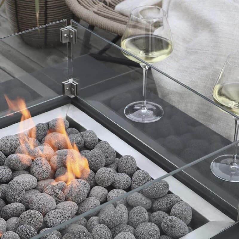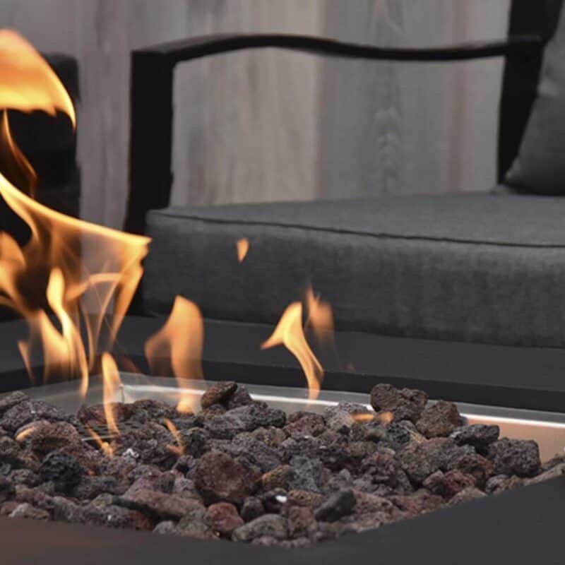 Ildbordets brænder er lavet af rustfrit stål, hvilket garanterer en pålidelig og holdbar ydeevne. Brænderen er designet til at skabe en smuk flamme, der afgiver varme og skaber en hyggelig stemning omkring bordet. Du kan justere flammens intensitet og skabe den perfekte atmosfære til enhver lejlighed.